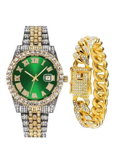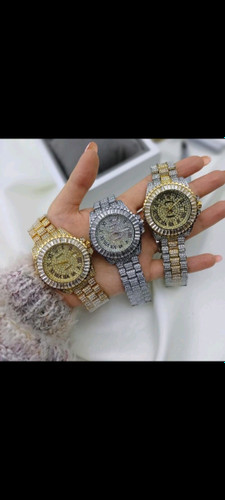 ساعت و دستبند ست رولکس فول نگین دیاموند پر رنگین کیفیت عالی در 4رنگ قرمز آبی سبز وطلایی