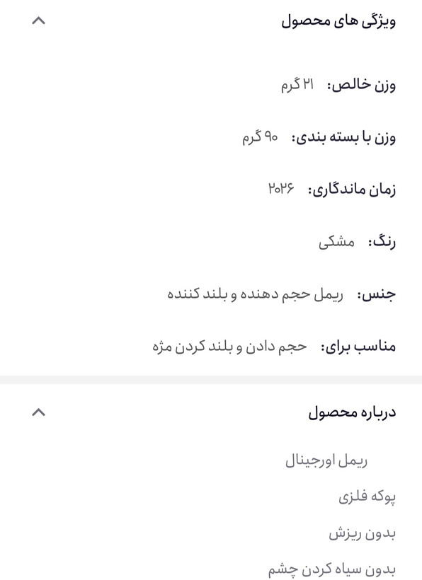 ریمل اوریجینال پوکه فلزی حجم دهنده و بلند کننده