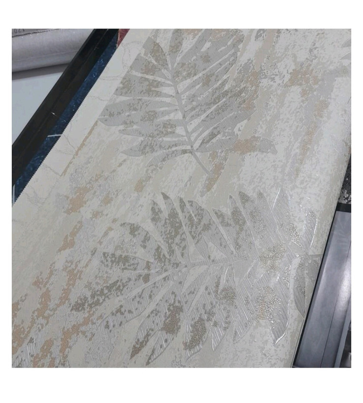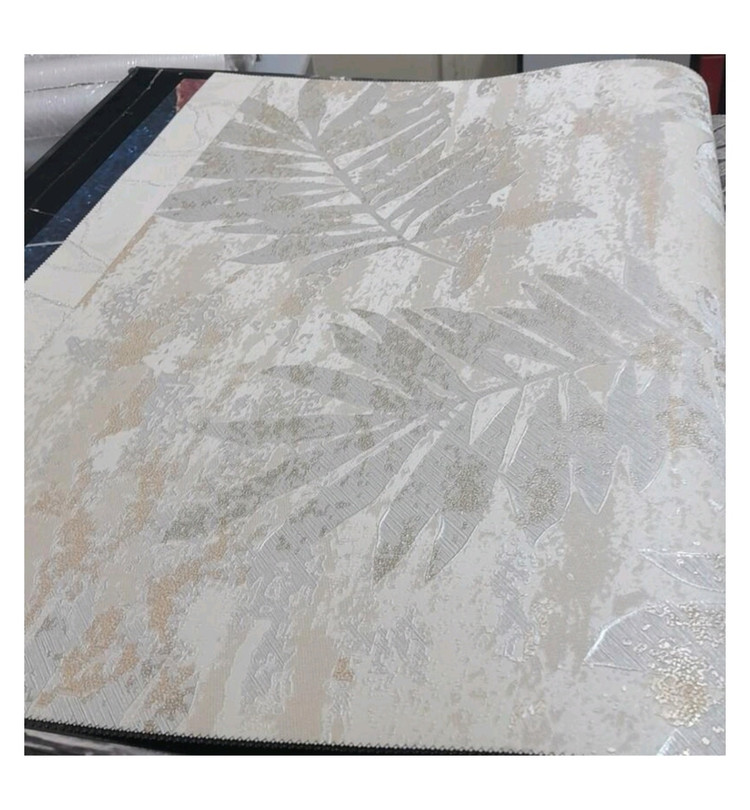 کاغذ دیواری طرح برگ اسپرت کرم طلایی طوسی شاین دار قابل شستشو درجه 1