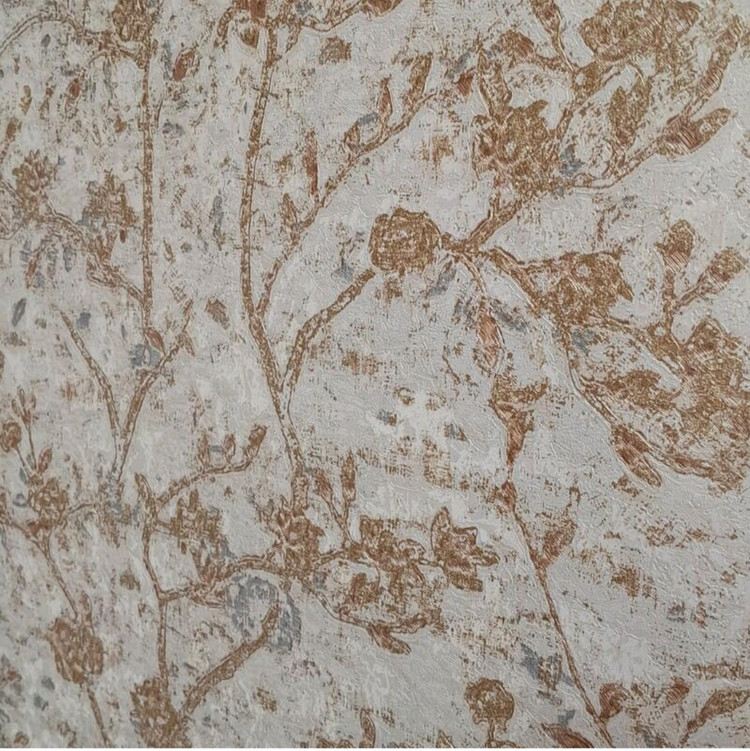 کاغذ دیواری طرح گل آبرنگی زمینه سفید رنگ گل سر طلایی