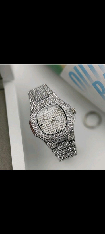 ساعت پتک فیلیپ رنگ سیلورفول نگین استون باجعبه
