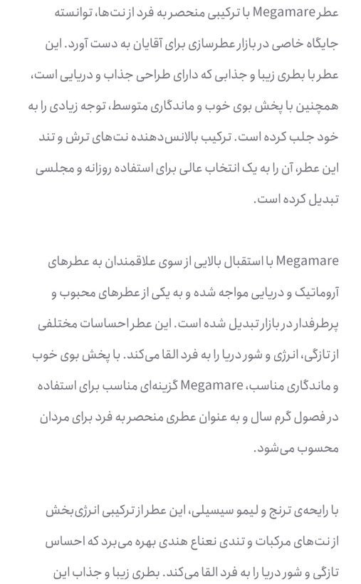 عطر گرمی واسانس اصل مگاماره با کیفیت و ماندگاری بسیار بالا