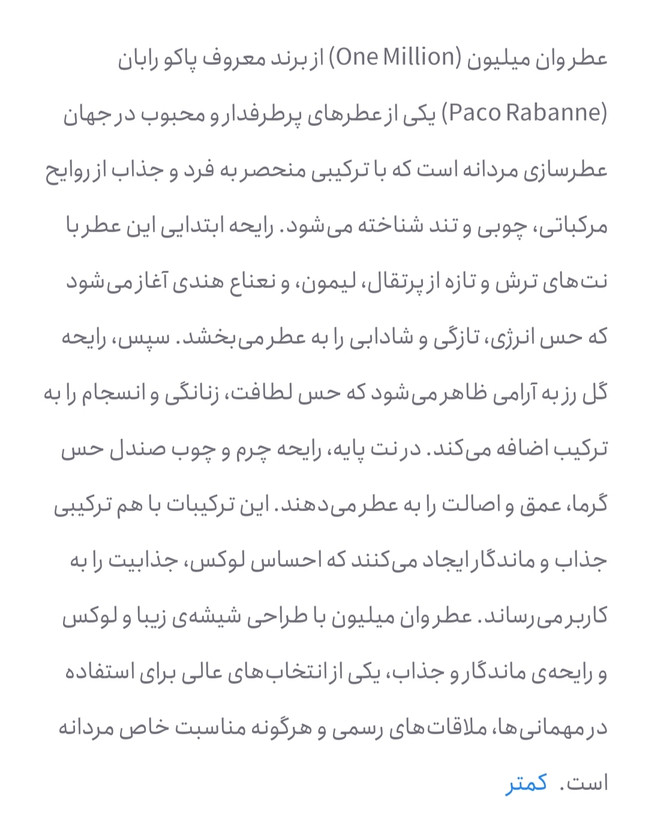 عطر گرمی واسانس اصل وان میلیون با کیفیت و ماندگاری بسیار بالا